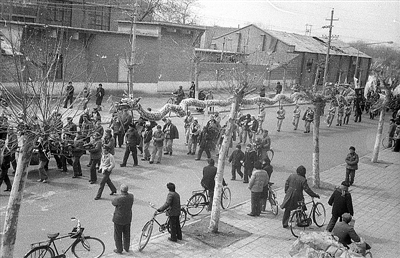 一張黑白老照片中,馬路上是民俗表演的隊(duì)伍,路邊是圍觀的群眾。這富有年代感的場(chǎng)景,引得50多名網(wǎng)友留言猜測(cè)是哪里,感慨歲月變遷,在朋友圈掀起一場(chǎng)回憶熱潮。網(wǎng)友“隨風(fēng)”留言:“看路邊的法國梧桐應(yīng)該是濱河路或者交通路南段。”網(wǎng)友“晴天”留言:“看到照片中大家都推著二八自行車,想起了那個(gè)有一輛自行車便滿是自豪的年代。橫梁上馱著孩子,后座上坐著老婆,當(dāng)時(shí)這樣出門是一件特別有面子的事兒。”