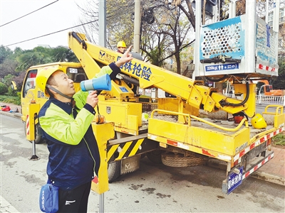 修剪工作經(jīng)常需要用到高空作業(yè)車等大型機(jī)械,為避免造成交通擁堵,王磊和同事總是在人流車流量小時(shí)開(kāi)始工作。“修剪工作需要早上班、晚下班、深夜再加一趟班。”王磊笑呵呵地說(shuō)。