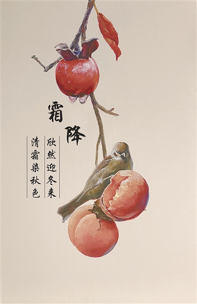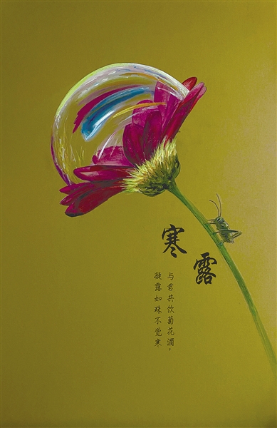 “每半個月就有一個節(jié)氣,要在一年內(nèi)完成二十四個節(jié)氣,時間確實比較緊張。”梁超進說,目前他已完成二十二幅作品,小滿和大寒正在創(chuàng)作。他打算以石榴花為主題創(chuàng)作小滿節(jié)氣,以企鵝為主題描繪大寒節(jié)氣。