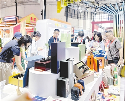 5月16日,記者在該展廳看到,琳瑯滿目的文創(chuàng)產(chǎn)品吸引著眾人目光。人們興致勃勃地挑選心儀的產(chǎn)品,歡聲笑語交織成一曲歡快的樂章。