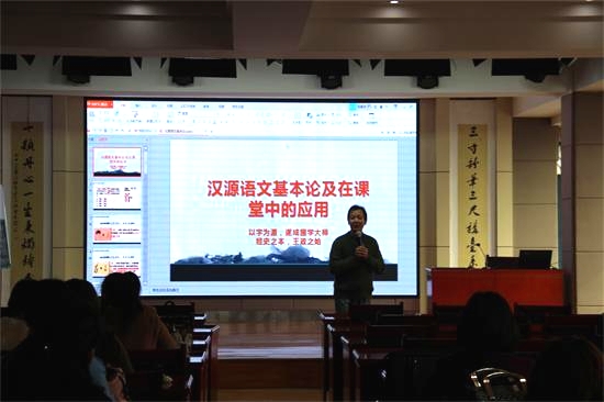學(xué)校邀請“漢字溯源語文教學(xué)法”創(chuàng)始人——孫萬里教授助理,河南漢字大賽組委會執(zhí)行副主任杜學(xué)武為全體語文教師做培訓(xùn)。杜主任系國家級課題——漢字溯源信息化教學(xué)與語文綜合應(yīng)用水平提高課題負(fù)責(zé)人孫萬里教授助理,目前負(fù)責(zé)該課題在教學(xué)中的指導(dǎo)與普及工作。