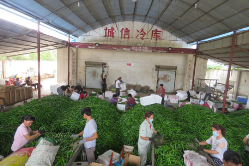 圖為臨潁縣王孟鎮(zhèn)石拐村自安產業(yè)扶貧基地的社員們,在冷庫為辣椒分揀、裝箱、冷藏時的情景。
