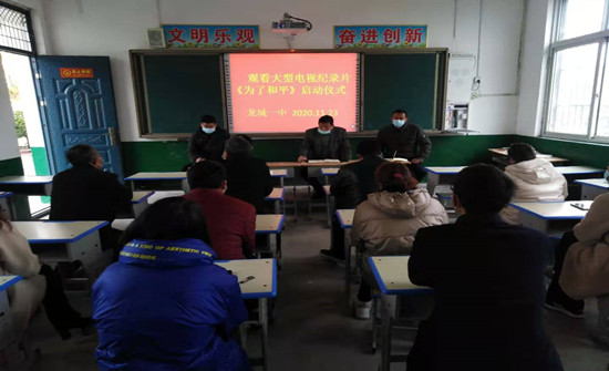 郾城區(qū)龍城一中舉行觀看大型電視紀(jì)錄片《為了和平》啟動儀式