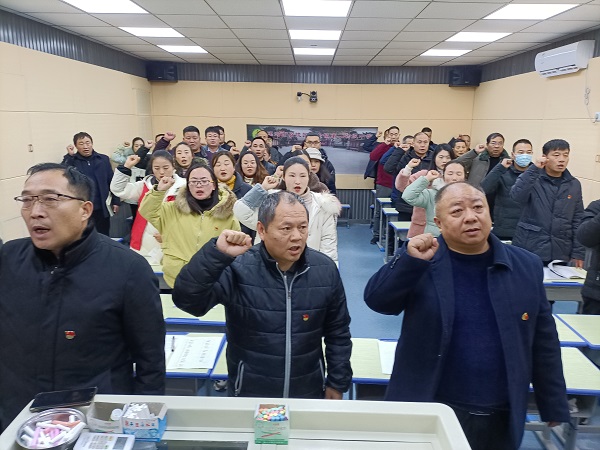 召陵區(qū)教育局主任韓建新給萬金鎮(zhèn)全體黨員教師上了思政課