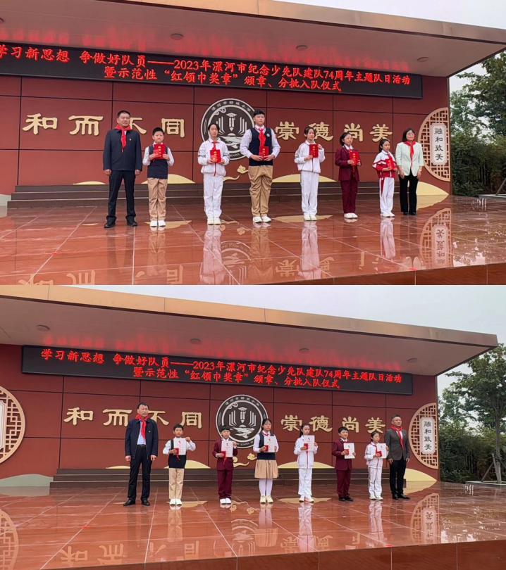 為加強(qiáng)對(duì)少年兒童的思想引領(lǐng),激發(fā)少先隊(duì)員的光榮感和組織歸屬感,示范推動(dòng)全市少先隊(duì)分批入隊(duì)和紅領(lǐng)巾爭(zhēng)章工作,10月12日上午,在第74個(gè)中國(guó)少年先鋒隊(duì)建隊(duì)日來(lái)臨之際,由共青團(tuán)漯河市委、漯河市教育局、漯河市少工委主辦,郾城小學(xué)承辦的“學(xué)習(xí)新思想 爭(zhēng)做好隊(duì)員”——2023年漯河市紀(jì)念少先隊(duì)建隊(duì)74周年主題隊(duì)日活動(dòng)暨示范性“紅領(lǐng)巾獎(jiǎng)?wù)?rdquo;頒章、分批入隊(duì)儀式在郾城小學(xué)圓滿(mǎn)舉行。