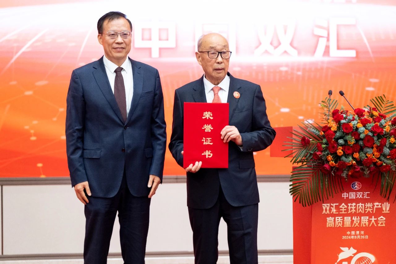 萬隆為獲得“中國雙匯輝煌40年突出貢獻(xiàn)項(xiàng)目公司”的單位頒獎(jiǎng)
