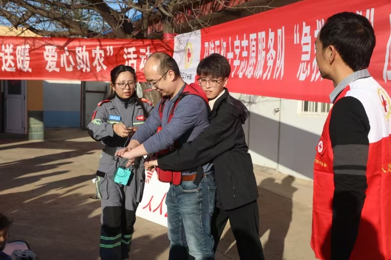 首先進行“急救地攤”應(yīng)急救護演練,區(qū)紅十字志愿者們攜帶急救設(shè)備,現(xiàn)場演示急救技能,通過“大手拉小手”的方式,家長和孩子們一起練習(xí)急救自救互救技能。