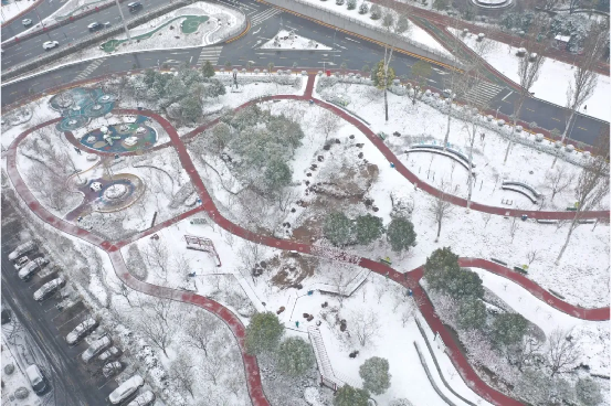 紅道蜿蜒櫻園里,雪映繁花待春綺。宋陟睿 攝(李鑫燕 宋陟睿)