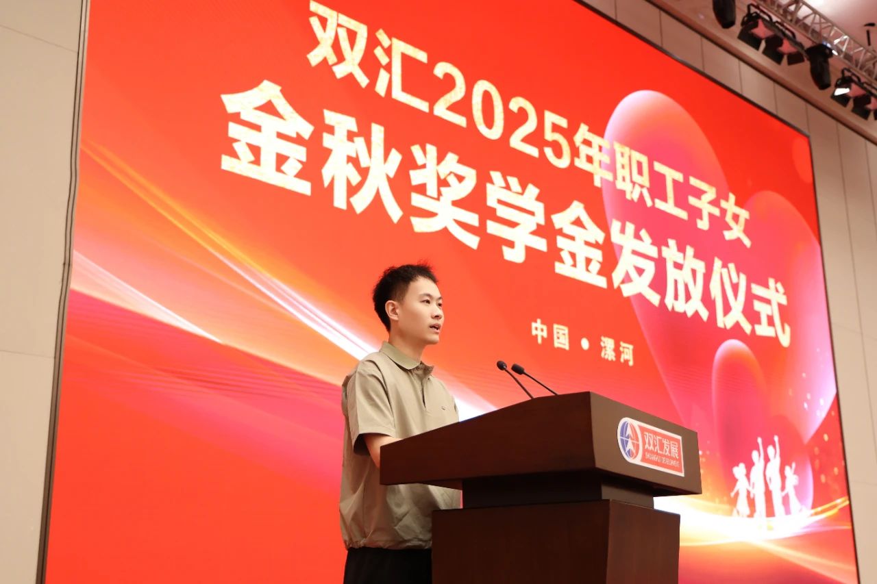 8月21日上午,雙匯2025年職工子女金秋獎(jiǎng)學(xué)金發(fā)放儀式在總部大樓報(bào)告廳隆重舉行。雙匯發(fā)展總裁馬相杰,雙匯發(fā)展黨委書記、工會(huì)主席杜俊甫,雙匯發(fā)展副總裁周霄及獲得獎(jiǎng)勵(lì)的第一批職工子女等近400人參加儀式。雙匯發(fā)展工會(huì)副主席王曉玲主持儀式。