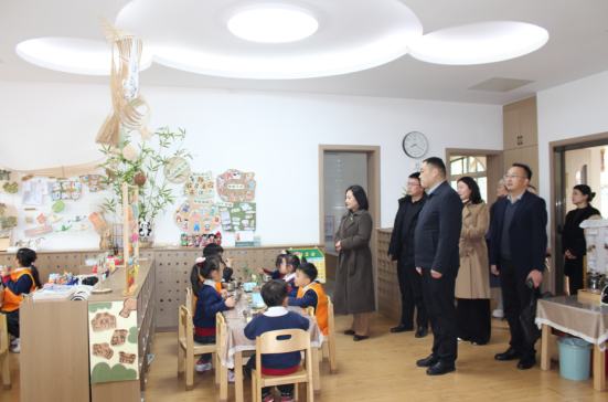 活動(dòng)開(kāi)始前,參會(huì)嘉賓參觀了幼兒園思政教育成果展板,直觀感受思政教育在幼兒園開(kāi)展的實(shí)踐成效。聶局長(zhǎng)一行深入班級(jí)調(diào)研,與孩子們親切互動(dòng),對(duì)園所思政教育融入日常的做法予以高度贊許和肯定。