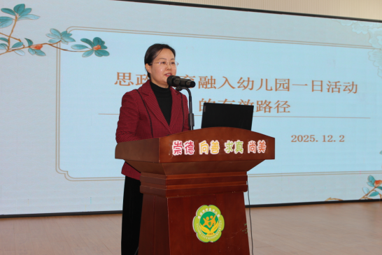 漯河市市直幼兒園黨總支副書(shū)記、園長(zhǎng)高林霞做了《思政教育融入幼兒園一日活動(dòng)的有效路徑》專題講座。她結(jié)合省級(jí)課題研究結(jié)項(xiàng)成果,從五個(gè)維度分享了高林霞思政課名師工作室開(kāi)展幼兒園思政教育的方法路徑,為思政教育與一日活動(dòng)深度融合提供了實(shí)踐思路。