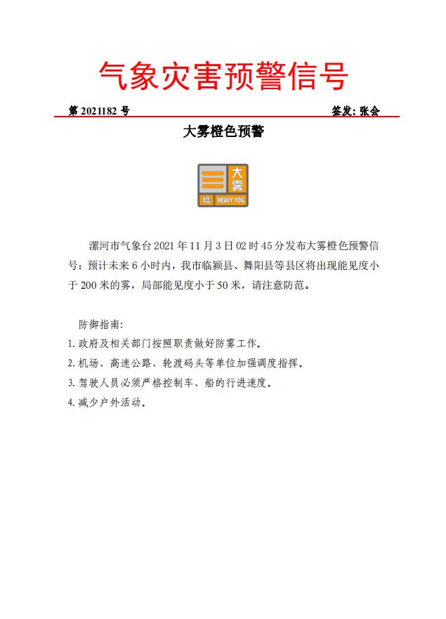 大霧橙色預(yù)警
