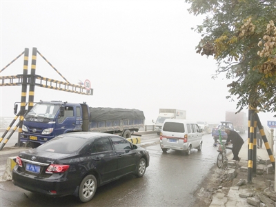 11月29日,記者看到網(wǎng)友“僅此而已”發(fā)的消息后,來(lái)到了107國(guó)道沙河橋看到,在107國(guó)道由南向北方向車(chē)輛較多,行駛緩慢。橋西半幅依然限高,而橋東半幅的限高桿已經(jīng)打開(kāi),在東半幅橋面中間,有一些石墩把橋面一分為二,由南向北的車(chē)輛走東半側(cè),由北向南的走西半側(cè)。