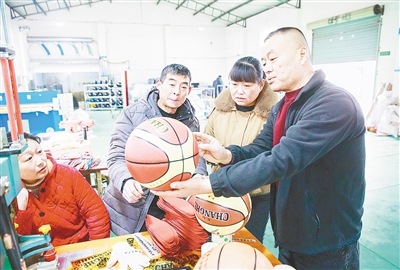 “我們正在抓緊時間完成訂單任務(wù)。”白可告訴記者,目前生產(chǎn)的是來自天津的三萬個籃球生產(chǎn)訂單。工人們加班加點(diǎn),每天能生產(chǎn)2000個。