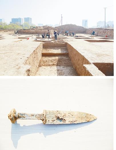 記者了解到,該古墓群在平漯周高速鐵路建設(shè)中被發(fā)現(xiàn),目前已發(fā)掘古墓200多座,出土有青銅劍、青銅匕首等戰(zhàn)國時(shí)期的青銅器及漢代的陶器、鐵器和玉器等文物千余件。
