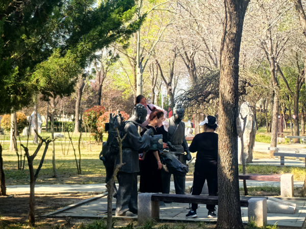 清明期間鳥(niǎo)文化園游客觸摸塑像不文明