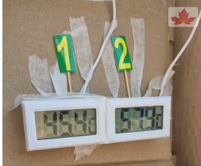 夏浩桐同學(xué)告訴記者:“去年秋天,我們觀賞紅楓葉時(shí),偶然發(fā)現(xiàn)路兩側(cè)的五角楓樹干出現(xiàn)了蛻皮壞死現(xiàn)象。寒假期間,我們又對(duì)整條路的五角楓進(jìn)行了全面觀察和統(tǒng)計(jì),發(fā)現(xiàn)壞死率竟然超過了65%。于是,我們就這個(gè)現(xiàn)象與學(xué)校張真老師進(jìn)行了討論。張老師非常支持,很快便成立了由她和我們四位學(xué)生組成的‘五角楓實(shí)驗(yàn)小組’。”“我們小組多次實(shí)地調(diào)查、現(xiàn)場(chǎng)測(cè)試后發(fā)現(xiàn),在夏季太陽直射下,五角楓樹皮西側(cè)和南側(cè)的溫度差異巨大。比如現(xiàn)在下午3點(diǎn),我們測(cè)得南側(cè)(1號(hào)線)電子測(cè)溫計(jì)顯示45.4℃,而西側(cè)(2號(hào)線)測(cè)溫計(jì)則顯示高達(dá)57.9℃,兩側(cè)溫差達(dá)到了12.5℃。”夏浩桐繼續(xù)說道,“我們小組經(jīng)過多次測(cè)試、記錄數(shù)據(jù),并查閱了大量資料,還借助了‘豆包’等AI工具進(jìn)行分析,最終發(fā)現(xiàn)了一些資料提到了‘日灼病’,即因太陽輻射溫度過高而導(dǎo)致的植物曬傷。我們認(rèn)為,這里的五角楓很可能就是患上了日灼病。”