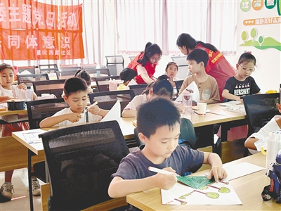 隨后,記者來到建西社區(qū)。大學生志愿者韓卓穎正給孩子們上美術(shù)課。孩子們拿起水彩筆,充分發(fā)揮想象力,在紙上畫出自己眼中的多彩世界。