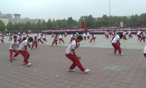 漯河四高體育教師王永剛:我們?yōu)榱藢W生終身體育的發(fā)展,去推廣心意六合拳,心意六合拳 你在辦公室 不分場合 不分男女老幼都可以練習,為學生的終身體育打下一個良好的基礎。心意六合拳在漯河四高得到了領導的重視,以后會發(fā)揚下去,爭取把我們漯河的國家級非物質文化遺產(chǎn)給它發(fā)揚光大。