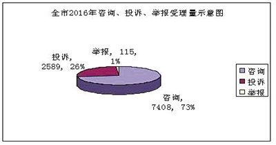 2016年我市“12315”受理消費(fèi)者咨詢、投訴、舉報(bào)10112件