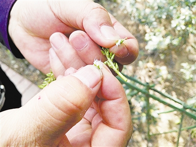 市區(qū)淞江路旁,栽種了不少楊樹和柳樹,楊樹已開始吐穗,剝開青綠色的小穗,里面一團團白絮清晰可見。再過一星期左右,這些白絮就要飄起來。