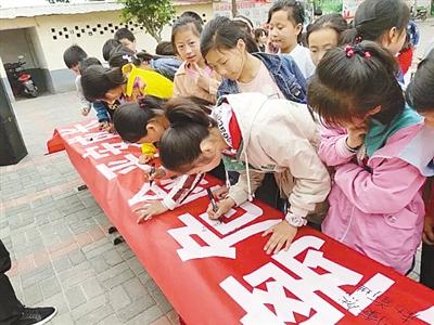 志愿者用一個(gè)個(gè)實(shí)例、一組組數(shù)據(jù),向?qū)W校師生和家長(zhǎng)講解防溺水安全知識(shí),提醒學(xué)生們“遠(yuǎn)離危險(xiǎn)水域”。隨后,全校師生一起莊嚴(yán)宣誓:珍愛生命,預(yù)防溺水,遠(yuǎn)離危險(xiǎn),平安成長(zhǎng)。學(xué)生們還認(rèn)真地在紅色條幅上簽名,表達(dá)“絕不一個(gè)人下水游泳”的決心。