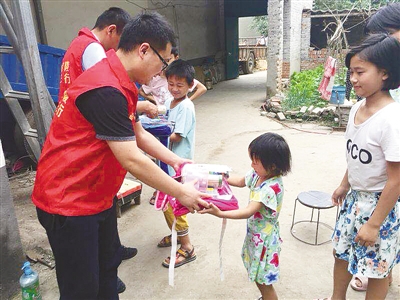 志愿者為小朋友送上“微心愿”物品。