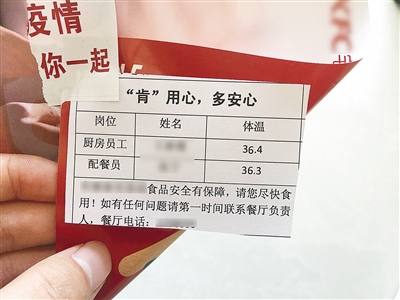 (記者 李林潤)菜品制作人是誰?配餐員是誰?他們今日的體溫是多少?近日,不少市民發(fā)現(xiàn),在打包食品的袋子上或者外賣軟件上,附有一張“安心卡”,讓人看了心里特別踏實(shí)。