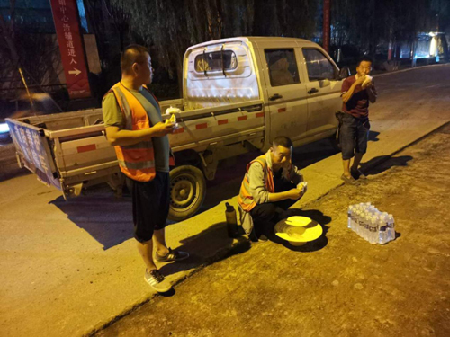 在9月8日早晨7:30左右,在這個(gè)時(shí)間段,很多上班人員才剛開始前往工作的路上,而他們已經(jīng)工作了近一個(gè)多小時(shí),和往常一樣皇十線項(xiàng)目部人員從施工現(xiàn)場回來準(zhǔn)備洗手吃早飯,準(zhǔn)備開飯的時(shí)候,張曉東對(duì)同事說:“我這會(huì)兒吃不下,我等會(huì)兒再吃”,說著就要起身邁步走,剛走兩步“撲通”一聲,是張曉東倒地的聲音,其他同事聽到聲響趕忙跑過去詢問情況,并小心翼翼的把張曉東攙扶起來,“我這會(huì)兒不知道怎么了,忽然就感覺雙腿沒有了力氣 ”張曉東說著就要邁腿向前走一步,工作三十余載的鄭民軍經(jīng)理聽到這話后立馬明白了是怎么一回事兒,急忙安排其他人開車送張曉東去醫(yī)院,鄭經(jīng)理對(duì)其他同事說:“曉東這種現(xiàn)象在我們施工人員中曾出現(xiàn)過,在2013年S241施工時(shí)安衛(wèi)東也是因?yàn)樘鞖庋谉岢龊固?,加上體力透支,導(dǎo)致身體出現(xiàn)虛脫、麻木等現(xiàn)象”,雖然大家對(duì)張曉東的情況比較擔(dān)心,但是,大家并沒有因此去浪費(fèi)時(shí)間,而是調(diào)整好心態(tài)著急忙慌的往嘴里扒拉早飯,想著在保證質(zhì)量的同時(shí)緊趕施工進(jìn)度,盡快投入到“熱火朝天”的工作中去。每分每秒對(duì)他們來說都非常珍貴,因?yàn)樗麄兊男叛鼍褪且?ldquo;鋪路石”精神建設(shè)人民滿意公路!