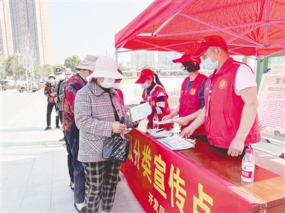 在“我為黨旗增輝”主題活動(dòng)中,我市各單位積極行動(dòng),開展了豐富多彩的志愿服務(wù)活動(dòng)。市婦聯(lián)開展了學(xué)雷鋒志愿服務(wù)活動(dòng),為市民免費(fèi)理發(fā)、磨刀、發(fā)放防走失黃手環(huán)等;市科協(xié)組織農(nóng)業(yè)專家深入臨潁縣王崗鎮(zhèn)滕寺村、繁城回族鎮(zhèn)雙路姚村,普及農(nóng)業(yè)知識(shí),傳授種植技術(shù);市圖書館的志愿者走進(jìn)夕陽紅老年公寓,為老人們送去養(yǎng)生類報(bào)紙和生活用品,并幫助打掃衛(wèi)生;郾城區(qū)人民檢察院的志愿者到裴城鎮(zhèn)寨子村,捐贈(zèng)防疫物資,向村民普及法律知識(shí)……