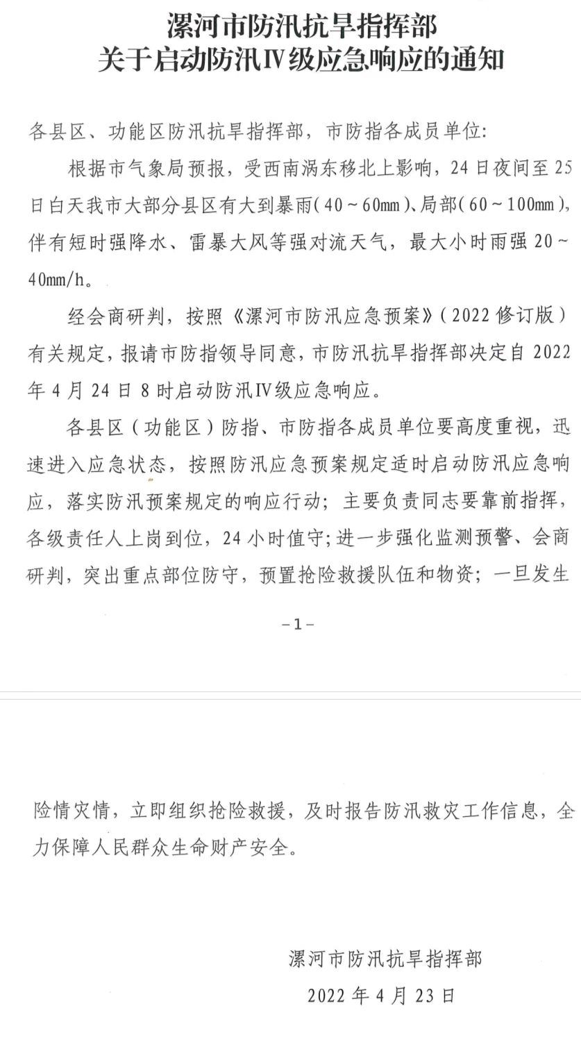 漯河發(fā)布啟動(dòng)應(yīng)急響應(yīng)緊急通知!